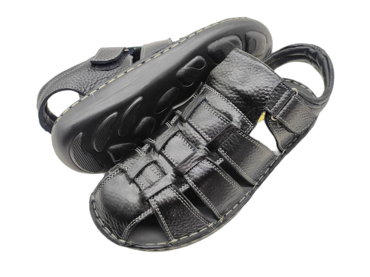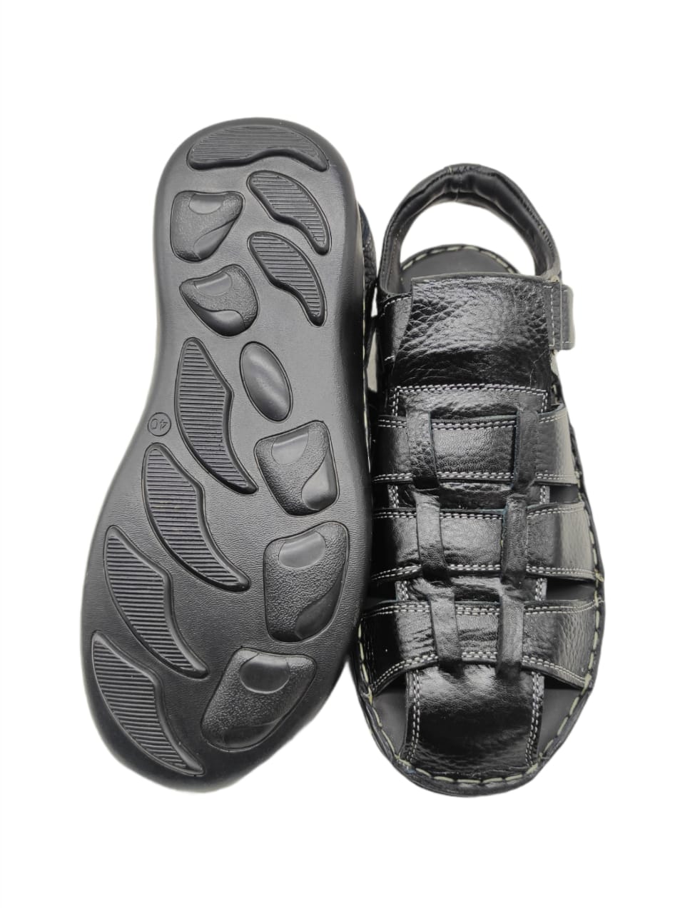 Genuine Black Leather Men’s Full Sandal
