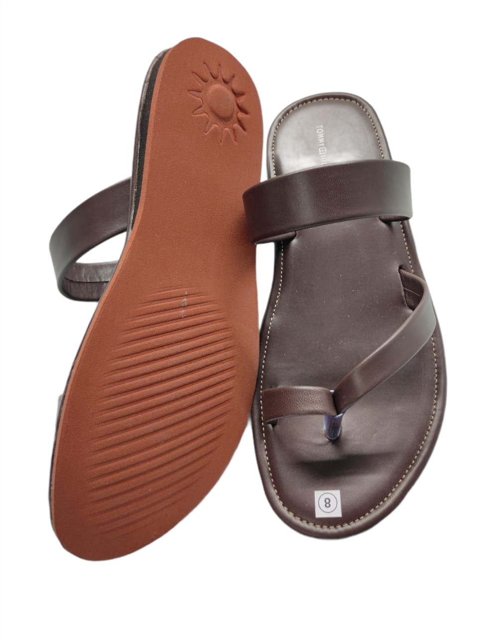 Genuine Dark-Brown Leather Men’s Machine Lasting Sandal